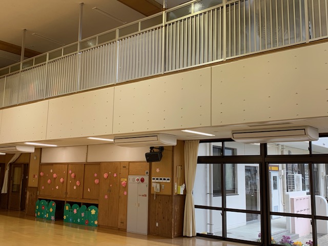 外部改修他工事が終了しました!外部改修他工事が3月24日(日)に終了しました。翌25日(月)に業者から引き渡しになりました。工事概要は外壁改修、ホール空調設備設置、屋上防水改修でした。添付した写真は改修後の園舎正面と、ホールに設置された空調設備です。外壁は小さなひびも修理されました。暑い夏でもホールでエアコンを稼働し、涼しい中で活動できます。